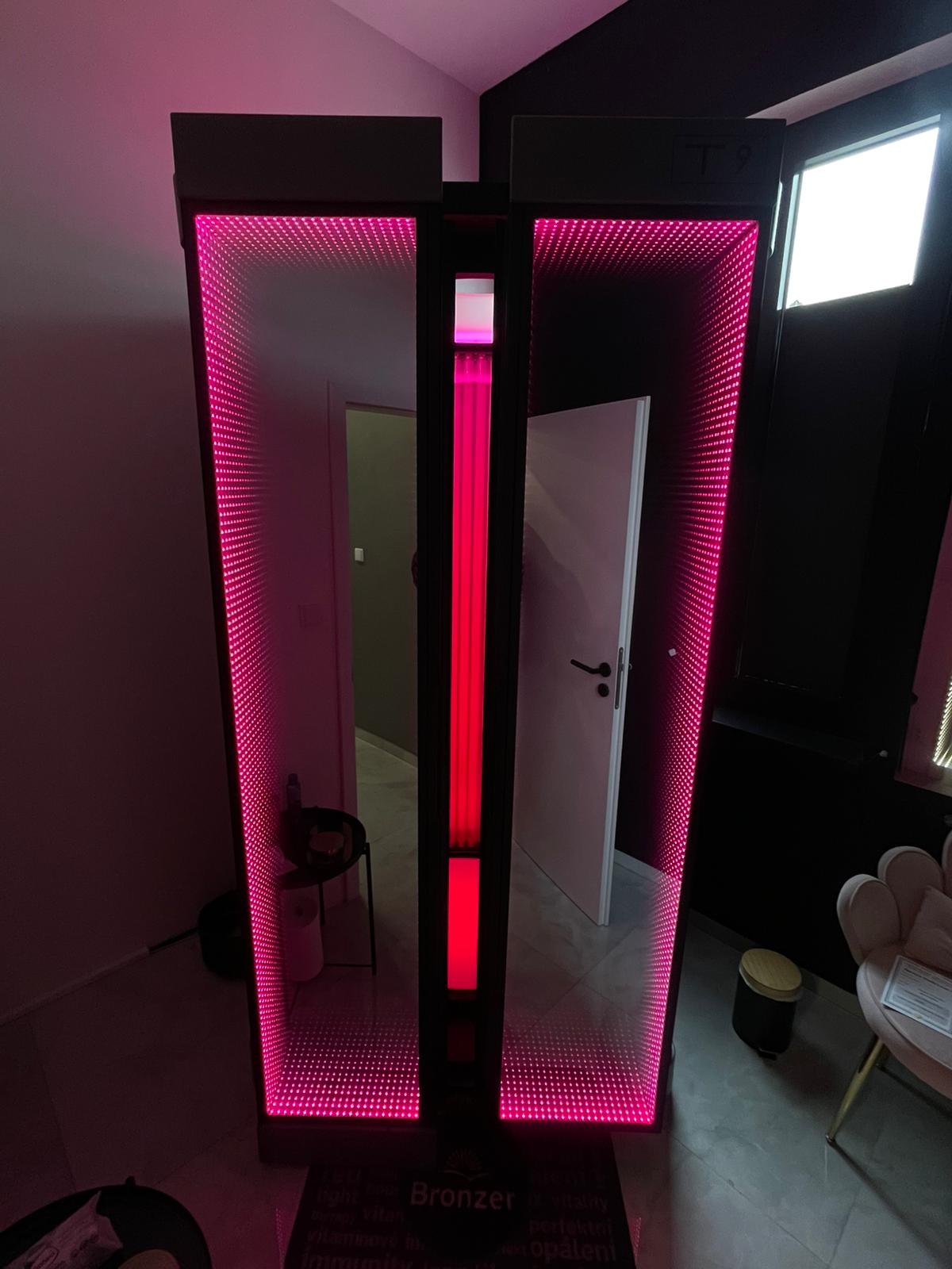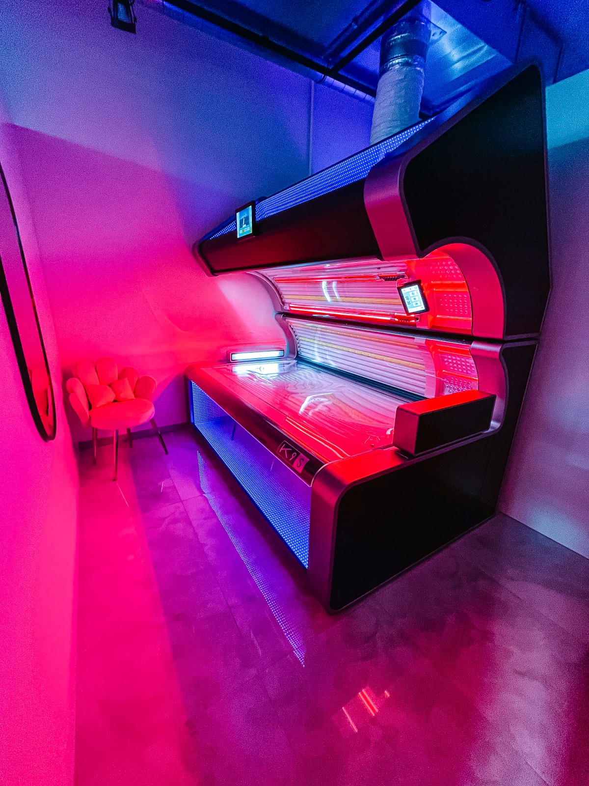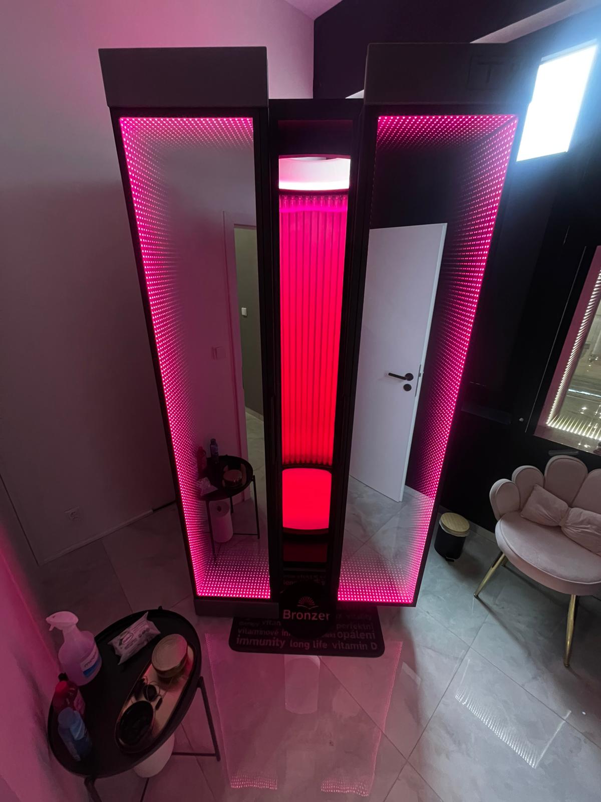 V kabince číslo 2 se nachází solárium s trubicemi navrženými pro tmavší, stabilní opálení, které proniká hlouběji do pokožky a vydrží výrazně déle. Kolagenové světlo podporuje regeneraci a pružnost pleti, zatímco inteligentní výbava stroje zajišťuje maximální komfort během opalování.
